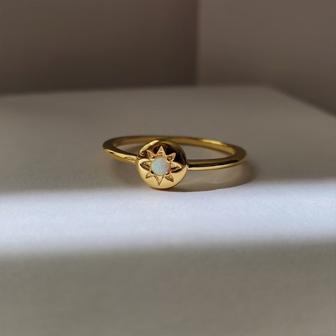 Cao cấp 18K vàng mạ lấp lánh ngôi sao phía Bắc 925 Sterling bạc Opal Nhẫn Moonstone ngôi sao sáng tem nhẫn đồ trang sức thời trang