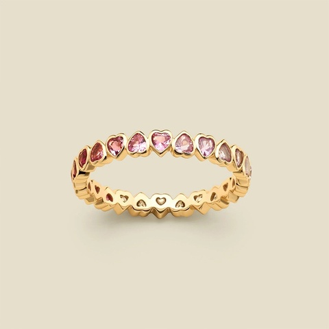 Nhẫn thiết kế mới, kiểu dáng trái tim cầu kỳ, màu hồng men, đính đá pha lê nhiều màu, quà tặng dành cho nữ